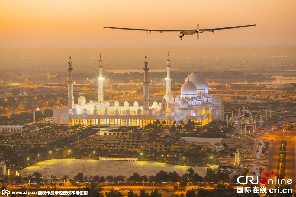 当地时间2015年2月26日,全球最大的太阳能飞机“阳光动力2号”在阿联酋首都阿布扎比上空飞行,为将于今年3月开始的环球飞行做准备。