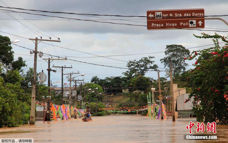 巴西与玻利维亚边境地区遭洪水袭击 城镇变“泽国”