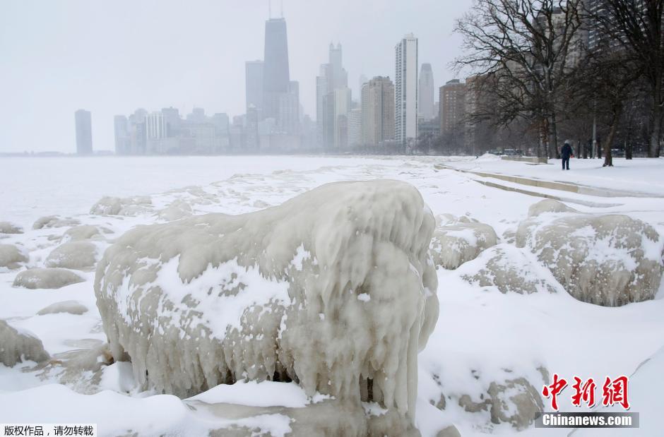 2月26日,在美国芝加哥,极寒天气在芝加哥地区已持续近两月。气象学家预计,如果极寒天气继续持续,今年2月将打破1875年2月平均温度华氏14.6度(约零下10摄氏度)的历史纪录,成为芝加哥历史上最冷的二月。