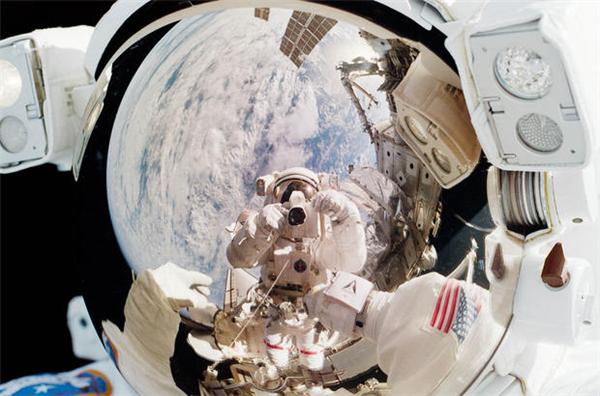 NASA宇航员外太空自拍照 以地球和空间站为背景