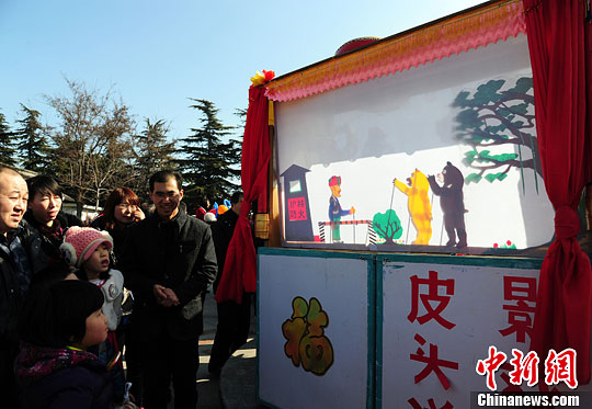 2月26日正月初八,山东烟台毓璜顶庙会人山人海。庙会上的皮影戏、面塑、糖画、烙画葫芦、剪纸、草编等老技艺纷纷推陈出新,融入时下流行的“美羊羊”、“熊出没”、“媚娘妆”等元素,令游客们眼前一亮。
