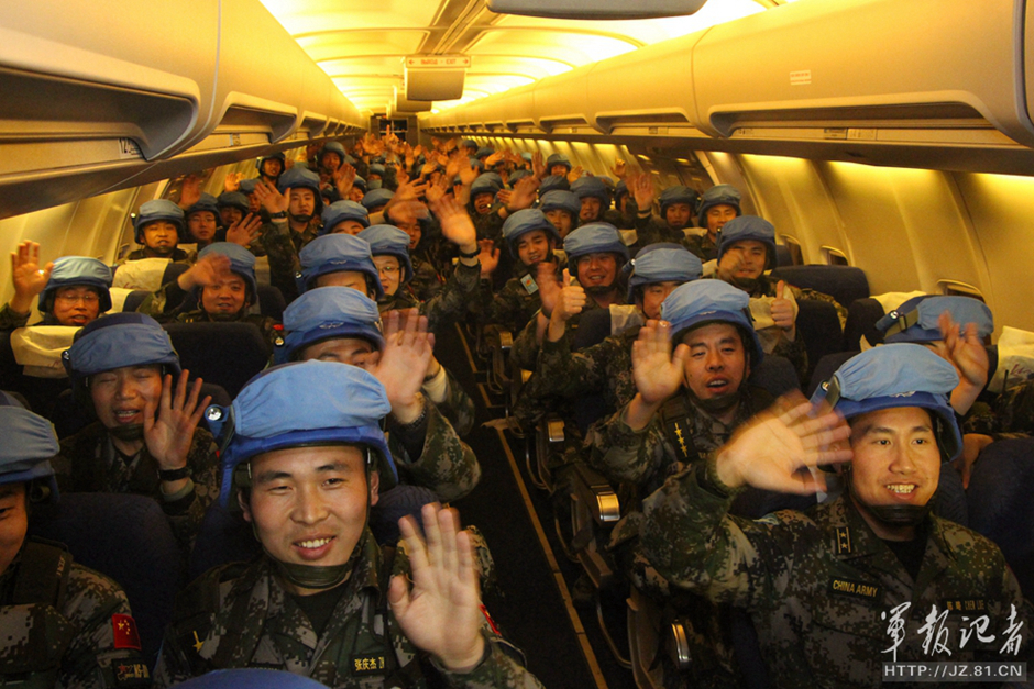 图为维和官兵登机出征时的情景 陶连鹏 摄