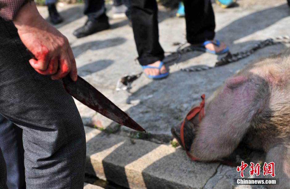 图为宰杀大猪。吕明 摄