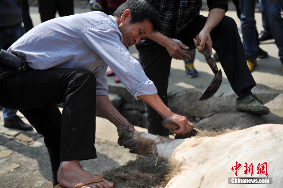 图为为大猪剃毛。吕明 摄