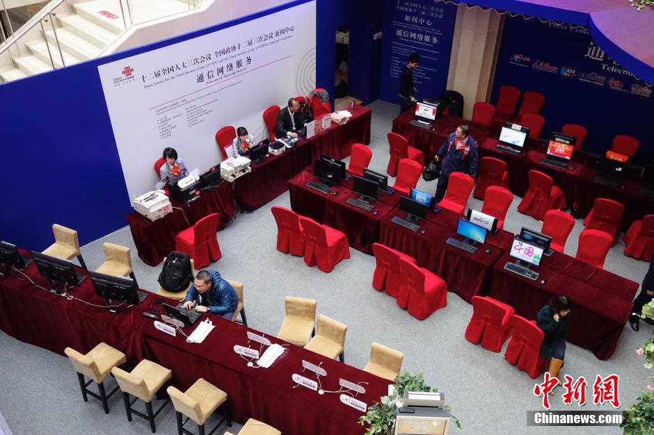 2月27日,设在北京梅地亚中心的全国两会新闻中心准备就绪。第十二届全国人民代表大会第三次会议和政协第十二届全国委员会第三次会议,将分别于2015年3月5日和3月3日在北京开幕。 中新社发 廖攀 摄