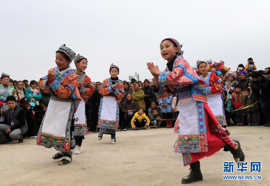 2月26日,苗族女孩在比赛中表演民族舞蹈。当日是农历正月初八,一场苗族跳花大赛在贵州省安顺市开发区西湖村跳花坡举行,吸引了周边村寨的80支苗族跳花队参赛。苗族群众用这种传统的庆祝方式祈愿新的一年风调雨顺,五谷丰登。新华社发(卢维 摄)