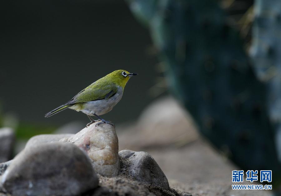2月26日,一只暗绿绣眼鸟在石头上“思考”。日前,位于沈阳市平罗镇的沈阳百鸟生态园正式营业,园内共有10多种、近百只鸟。与室外的严寒相比,这里温度适宜、鸟语花香,成为人们近距离赏鸟的好去处。新华社发