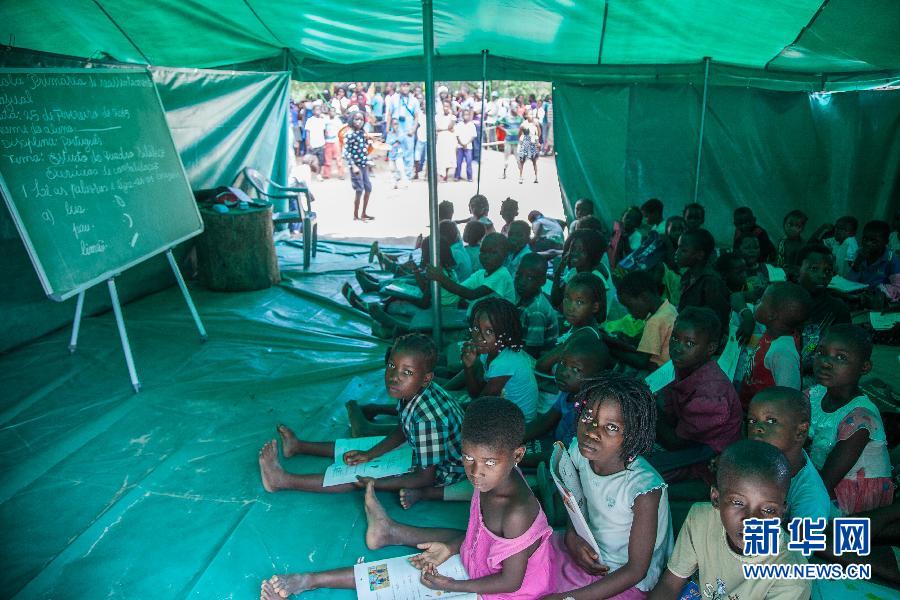 2月25日,在莫桑比克赞比西亚省一处灾民临时安置点,孩子们在临时帐篷内学习。 自去年12月进入雨季以来,莫桑比克北部和中部地区出现洪涝灾害,目前已造成至少158人死亡,约20万人受到影响,其中中部省份赞比西亚省受灾情况最严重。 新华社发(莫罗摄)
