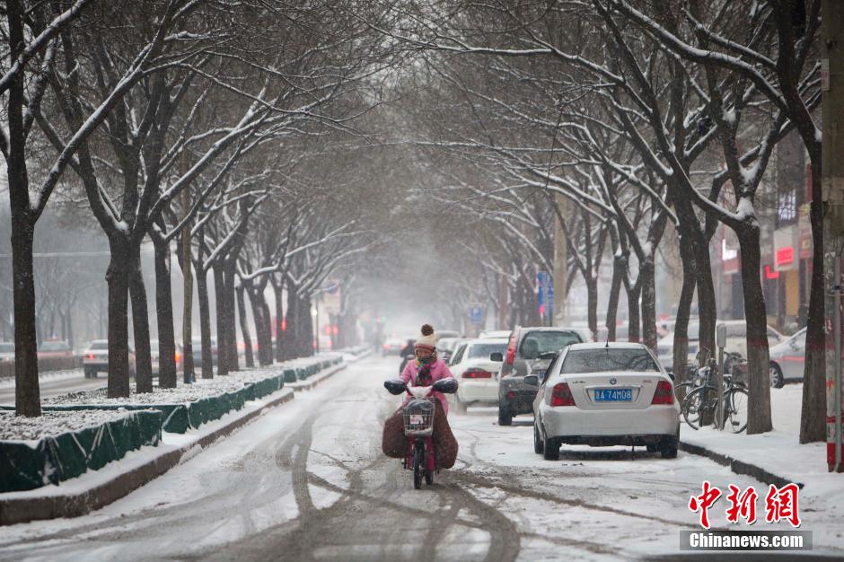 2月27日,山西太原普降大雪,全副武装外出的民众小心翼翼地出行。当日,中央气象台对外消息显示,预计今明两天,中国中东部雨雪天气持续,其中,西北地区东部、华北、东北、黄淮、江淮大部、江汉大部等地有小到中雪或雨夹雪,部分地区有大雪;江南中北部、江淮南部等局地并将伴有雷雨。中新社发 张云 摄