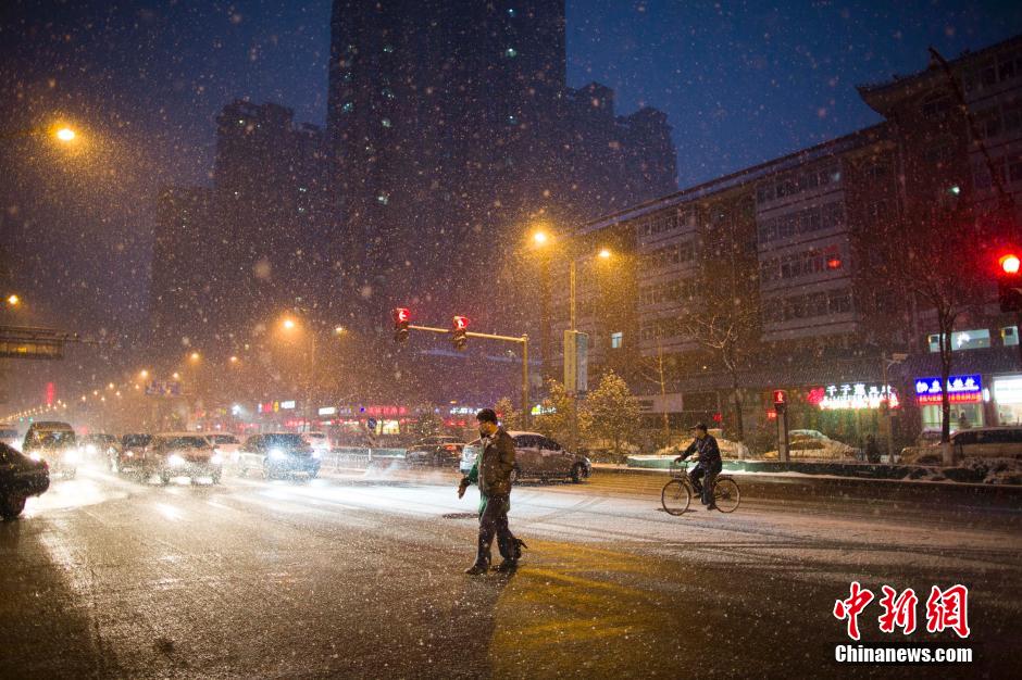 2月27日,山西太原普降大雪,全副武装外出的民众小心翼翼地出行。当日,中央气象台对外消息显示,预计今明两天,中国中东部雨雪天气持续,其中,西北地区东部、华北、东北、黄淮、江淮大部、江汉大部等地有小到中雪或雨夹雪,部分地区有大雪;江南中北部、江淮南部等局地并将伴有雷雨。中新社发 张云 摄