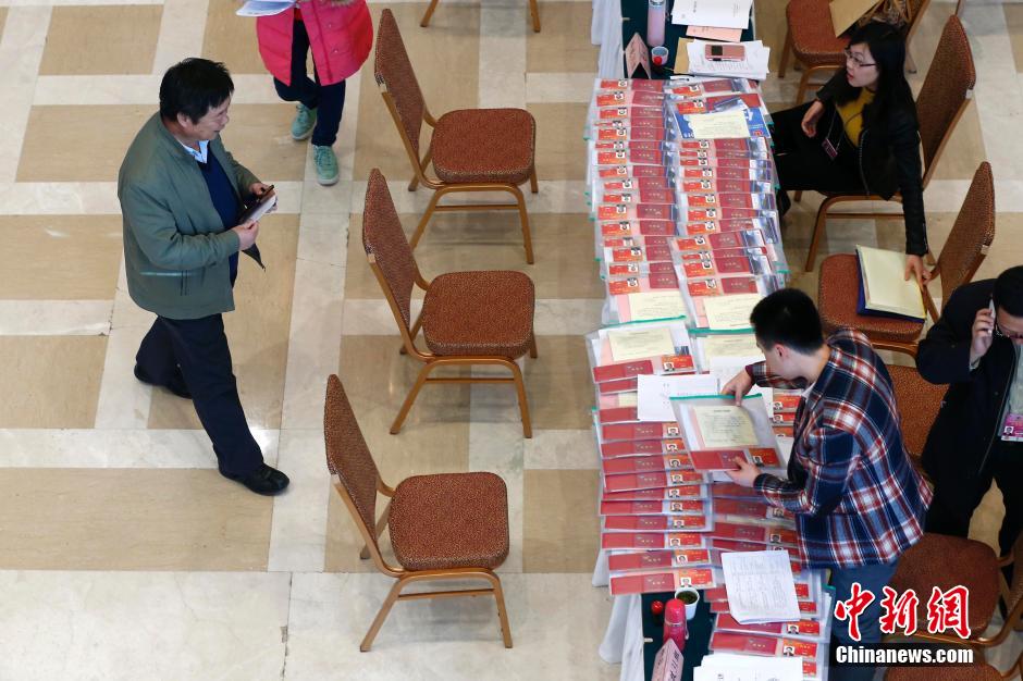 3月1日,参加全国政协十二届三次会议的委员陆续抵京并报到。中新社发 富田 摄