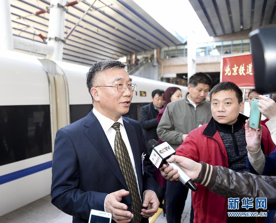 3月1日,来自河南省的全国政协委员抵达北京,出席全国政协十二届三次会议。这是全国政协委员司富春(左)在接受媒体记者采访。 新华社记者张铎 摄 图片来源:新华网