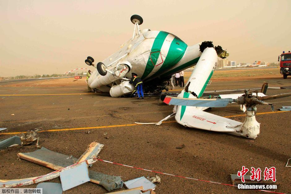当地时间2015年2月28日,苏丹喀土穆机场,一辆直升机在机场着陆时起火,造成一人受伤。