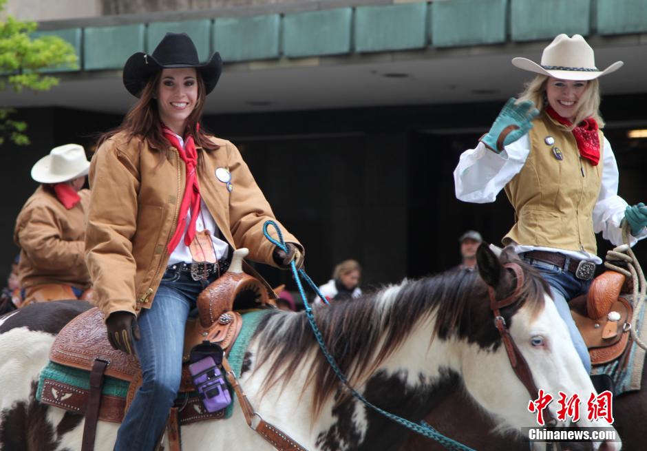 当地时间2月28日,休斯敦牛仔节游行中的牛仔美女。中新社发 王欢 摄