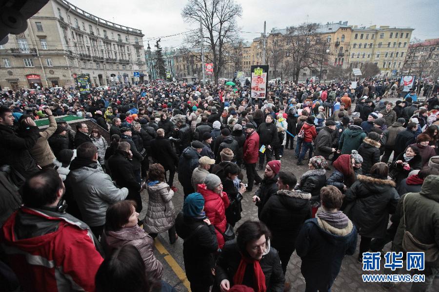 3月1日,人们在圣彼得堡参加游行集会,纪念遇害的反对派领导人涅姆佐夫。涅姆佐夫2月27日晚在红场附近的一座桥散步时遭不明身份人员枪击身亡,俄总统普京要求成立专门小组调查此事,并表示一定要将凶手绳之以法。新华社发(莫京娜 摄)