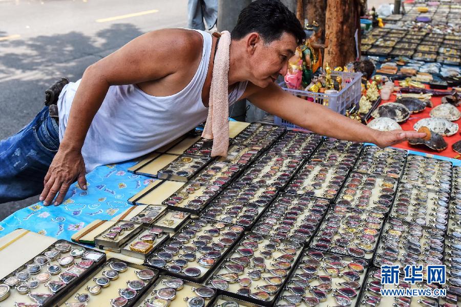 帕詹路位于曼谷老城区,临近寺庙和码头,是曼谷著名的护身符交易集散地。商家沿帕詹路摆设摊位,各类护身符琳琅满目,成为当地一道独特的风景线。 新华社记者李芒茫摄