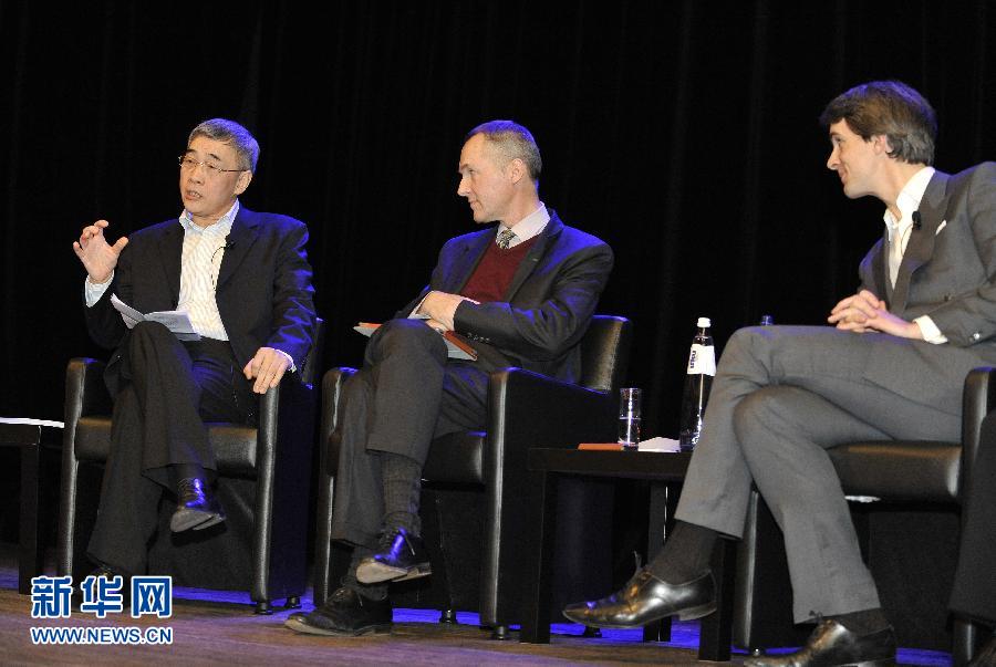 2月27日,在比利时首都布鲁塞尔,中国驻比利时大使曲星(左一)出席布鲁塞尔当代中国研究所研究员乔纳森·霍尔斯拉赫(右一)的《中国与亚洲将有一战》新书发布辩论会,并对该书主要观点进行了犀利批驳。新华社记者叶平凡摄