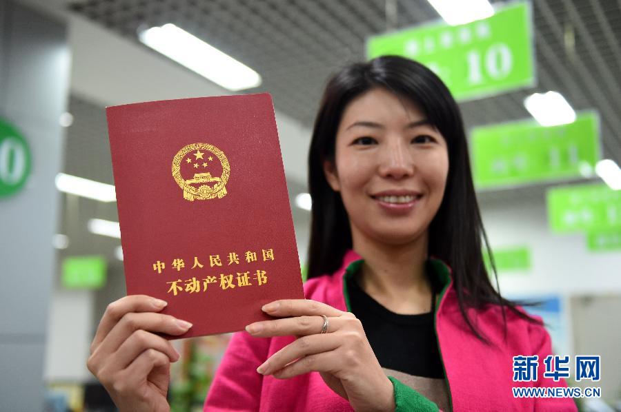 3月2日,一家企业有关负责人在南宁市政务服务中心展示企业不动产权证书,这是广西颁发的全区第一本不动产权证。当日,广西颁发全区第一本不动产权证书。据悉,广西壮族自治区国土资源厅不动产登记局2月28日正式挂牌。自治区不动产登记局负责人表示,2015年,广西在推进不动产登记机构建设的同时,还将加强制度建设,加强与地方衔接。各市、县不动产登记机构设立统一窗口,制定收件标准、业务办理规程,建立健全“首问负责”“一站式”服务等配套措施,努力提高行政效能、有效保护不动产权利人的合法财产权。新华社记者 陆波岸 摄