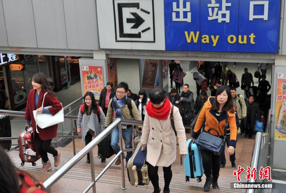 3月2日,福州火车站迎来学生返程高峰,外出就学和到达本地的学生旅客络绎不绝,加上商务流、外来务工流的交叠,该站出发和到达的旅客较为密集,日均超14万人次。图为民众从福州火车站出站口走出。中新社发 吕明 摄