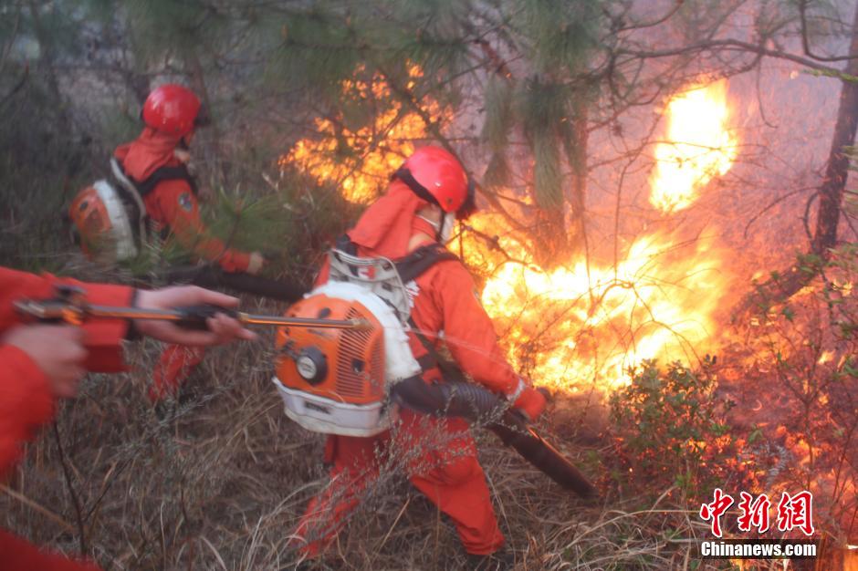 3月2日4时39分,昆明市石林县西街口镇小尾都渣村后山发生森林火灾,明火于5时31分扑灭;11时33分,由于气温升高,风力较大,火场发生复燃。当地先后组织650人进行扑救,并调集150名森警前往火场支援。图为武警昆明市森林支队官兵赶往火灾现场。中新社发 孙浩 摄