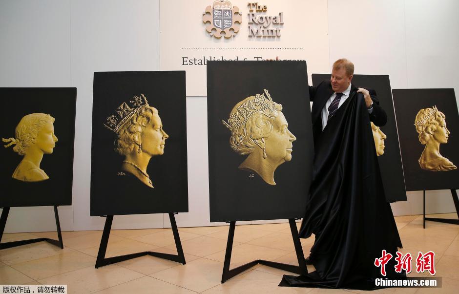 当地时间2015年3月2日,英国伦敦,英国国家肖像画廊展出新的女王肖像及新版硬币。这是在英女王62年的统治期间第5次更换头像。