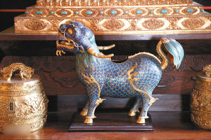 刘阳曾经到该博物馆亲自考证过此次丢失的清代景泰蓝麒麟,这件铜胎镀金麒麟外形四足站立,麒麟张口作嘶吼状,臀部丰满高翘,似有跃动之势,通体填海蓝珐琅为地,掐铜丝作鳞纹,并以宝蓝珐琅点缀,颈部饰以绿鬃,眉毛胡须皆外展鎏金。