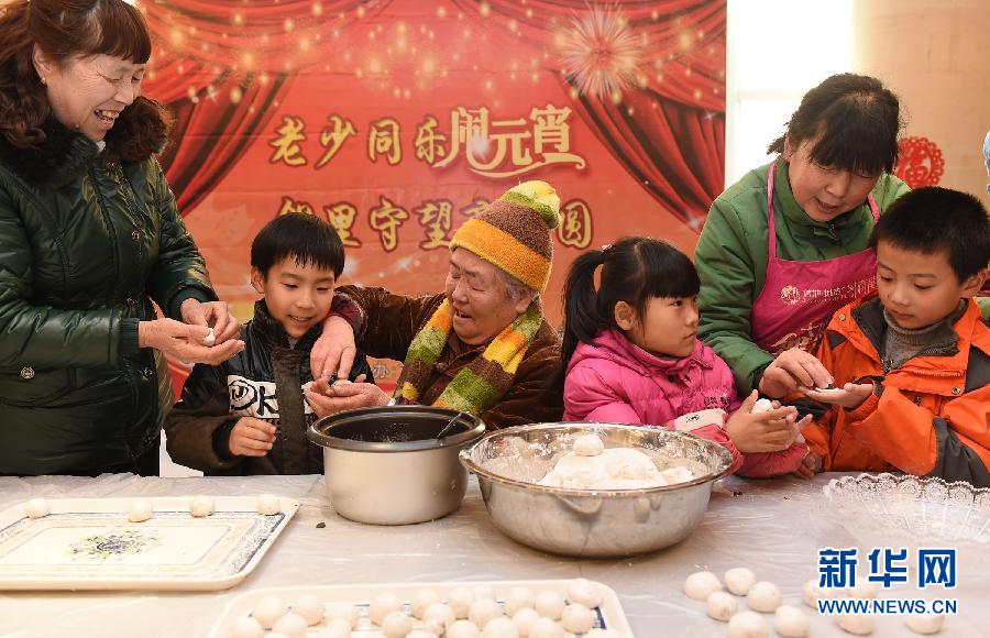 3月3日,安徽省合肥市蜀山区文博苑社区内的老人在教孩子包元宵。元宵节前,安徽省合肥市蜀山区文博苑社区组织社区的老人和孩子一起做元宵,共迎元宵佳节的到来。 新华社记者 郭晨 摄