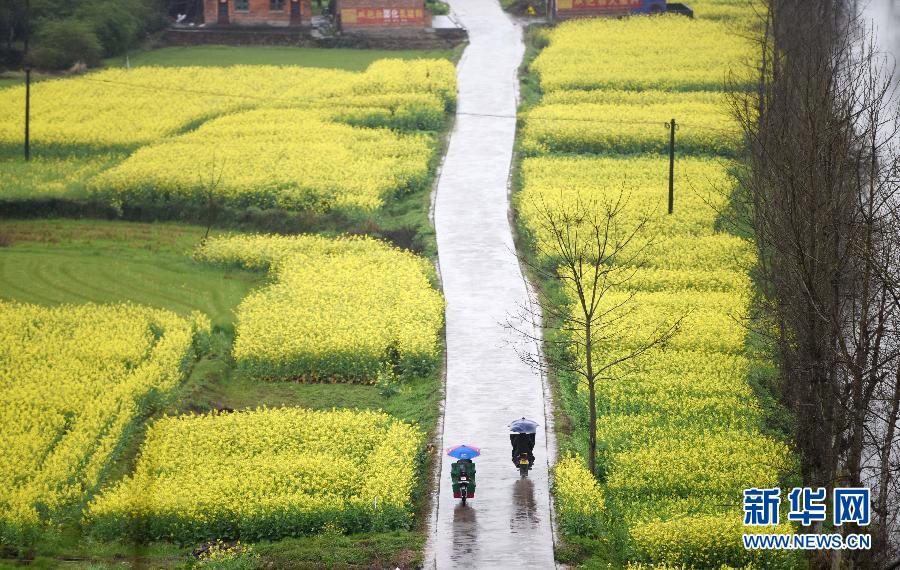 3月3日雨中拍摄的资兴市蓼江镇一片油菜花海。位于湘南地区东江湖畔的湖南资兴市蓼江镇3月2日开始了“东江湖·蓼江第三届赏油菜花节”,全镇大面积油菜花盛开,吸引大量游客和市民前往游览观赏。近年来,蓼江镇大面积推广油菜种植,并对农户种植油菜进行补贴,通过赏油菜花来推动农家休闲观光旅游产业发展,拓展农民增收途径。目前全镇种植油菜面积超过13000亩,每亩纯收入超过400元。新华社记者 李尕 摄