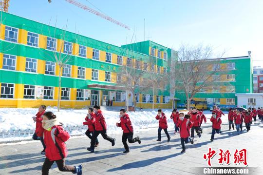 演练中,学生们用手,有的用毛巾、手帕,有的用衣物捂鼻,低姿迅速撤离到学校安全地带。 周继成 摄