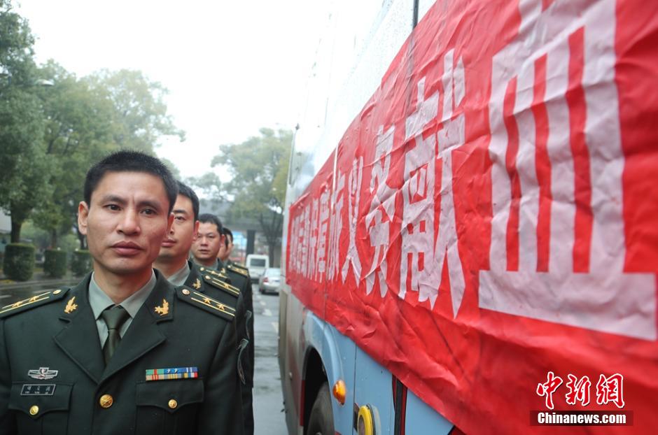 图为湖南某预备役后勤保障旅的官兵正准备献血。 曹正平 摄