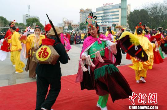 江苏省镇江市嶂山马灯队在进行马灯表演。 石玉成 摄