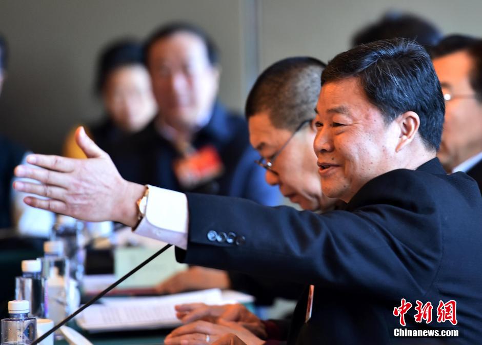 3月4日,全国政协委员分组讨论政协全国委员会工作报告。全国政协十二届三次会议新闻发言人吕新华参加分组讨论。 中新社发 翟羽佳 摄