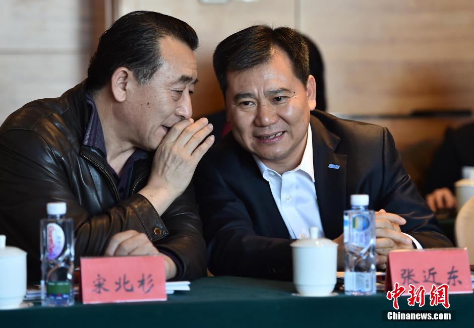 3月4日,全国政协委员分组讨论政协全国委员会工作报告。张近东、宋北杉在工商联分组讨论现场交谈。中新社发 翟羽佳 摄