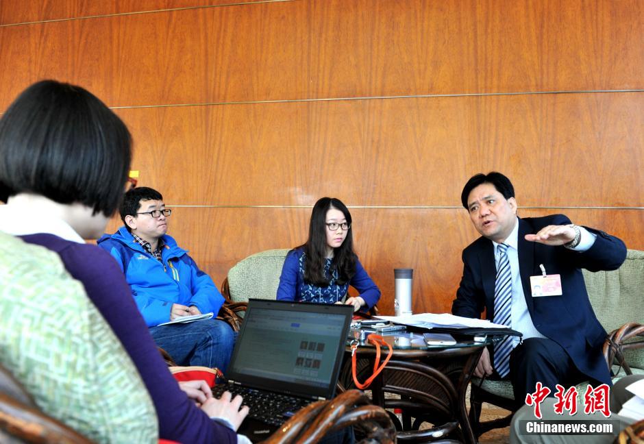 3月4日,全国政协委员、陕西省副省长张道宏接受记者采访。当日,全国政协十二届三次会议举行分组讨论会。中新社发 张斌 摄
