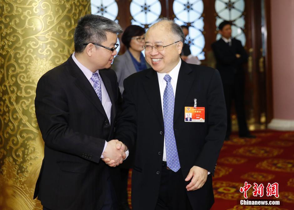 3月4日,中共中央政治局常委、全国人大常委会委员长张德江在北京参加全国政协十二届三次会议港澳委员联组会议。全国政协委员、香港大律师廖长城参加会议。中新社发 杜洋 摄