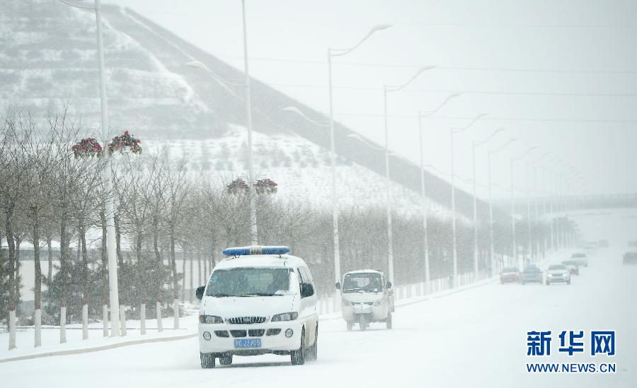 3月4日,在宁夏固原市,车辆在雪中行进。当日,宁夏固原市普降中到大雪,固原市气象台发布道路结冰黄色预警,福银高速李旺至沿川子段部分路段双向交通管制,交通部门提醒出行市民注意交通安全。新华社记者 王鹏 摄