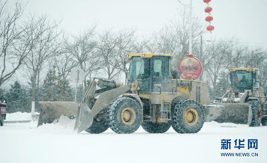 3月4日,在宁夏固原市,清雪车在清理积雪。当日,宁夏固原市普降中到大雪,固原市气象台发布道路结冰黄色预警,福银高速李旺至沿川子段部分路段双向交通管制,交通部门提醒出行市民注意交通安全。新华社记者 王鹏 摄