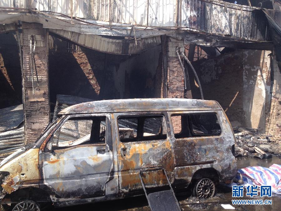 东盟联丰农产品商贸中心部分商铺被烧成废墟,停放的车辆也被烧毁(手机照片,3月4日摄)。 3月4日凌晨,昆明市官渡区彩云北路1502号东盟联丰农产品商贸中心发生一起火灾,已造成9人死亡,10人受伤,50余间商铺被烧毁。经全力扑救,现火灾已扑灭,伤员已得到及时妥善救治。目前,火灾事故调查、伤员救治、现场清理及善后处理工作正在进一步开展中,商场及商铺相关人员已被公安机关控制。 新华社记者 吉哲鹏 摄