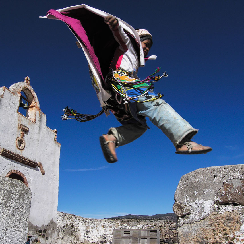 塔拉乌马拉族,墨西哥奇瓦瓦 在墨西哥奇瓦瓦,一个塔拉乌马拉人在圣瓜达卢佩朝圣日将自己打扮成了《The Dance of the Moors and the Christians》中的马塔奇舞者。