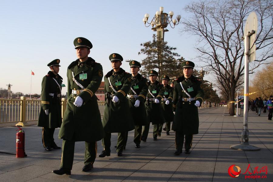 2015年3月3日武警北京总队天安门支队两会执勤哨兵 牛成浩摄