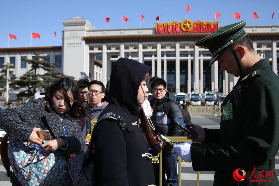 2015年3月3日武警北京总队天安门支队两会执勤验证警官 牛成浩摄