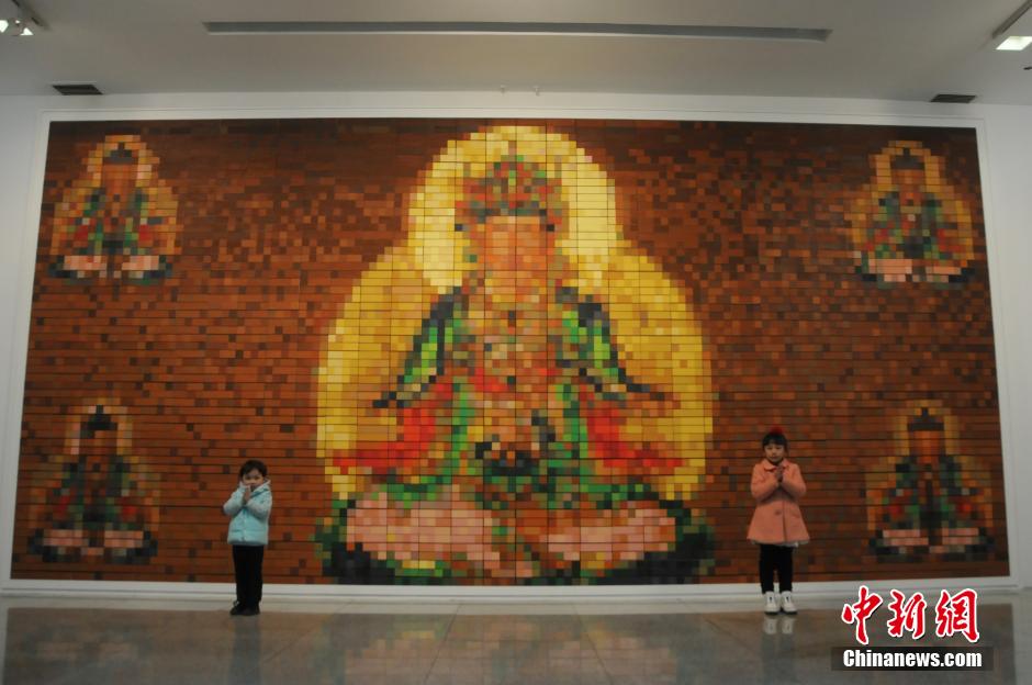 山西太原1856个彩色盒子拼成文殊菩萨智慧墙