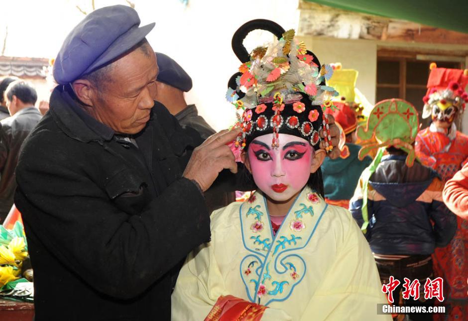 图为村民正在化妆。 师永红 摄