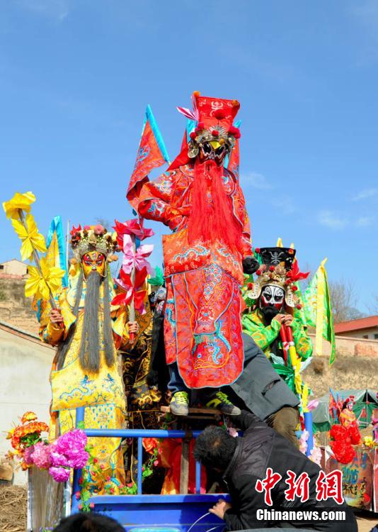 甘肃农民穿戏服画脸谱耍社火闹元宵