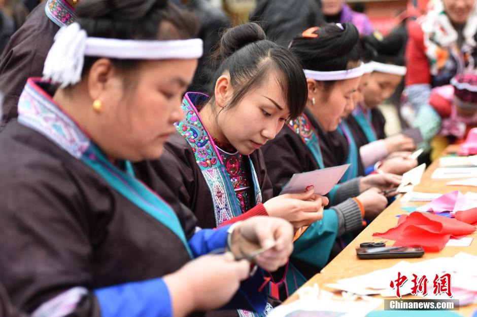 3月4日,广西三江侗族自治县同乐乡的100名绣娘进行刺绣比赛,用竞绣技的方式迎接“三八”妇女节的到来。杨明 摄