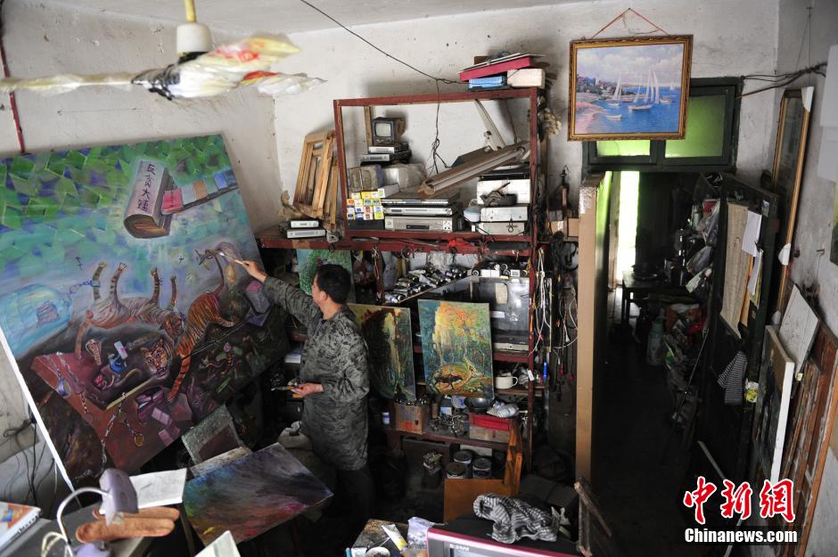 屈万荣的维修店也是绘画工作室。王康明 摄