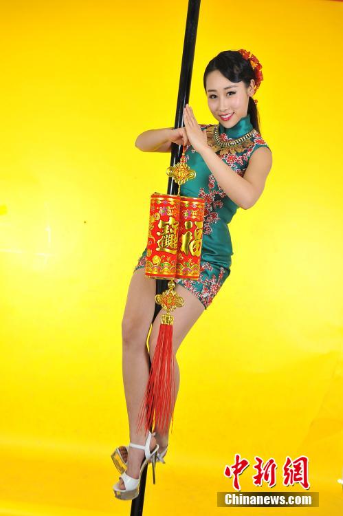 近日,钢管舞美女天团成员潇戈演绎“钢管上的新年”,喜迎2015中国钢管舞美女大赛正式启动。最终选拔产生的选手,将加入钢管舞美女天团。今年四月,钢管舞美女天团将在2015钢管舞世锦赛期间亮相。钟欣 摄