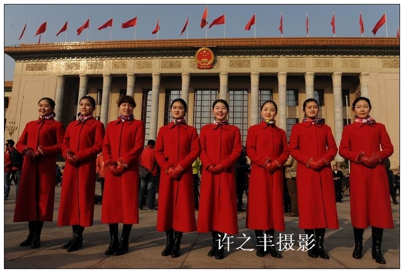 2015年3月5日,第十二届全国人民代表大会第三次会议在北京人民大会堂开幕。今天也是农历正月十五元宵佳节,图为在天安门广场上为两会服务的职业人。工人日报-中工网记者许之丰摄影报道