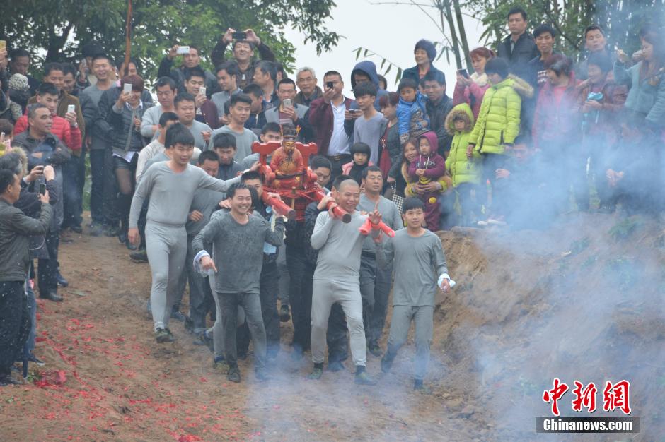 十几名青壮年抬着伽蓝王神像,准备下水。余丹 摄