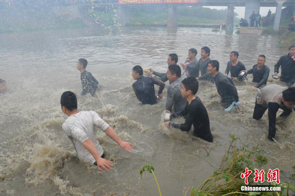 对岸的人飞奔过去,准备朝神像泼水。余丹 摄
